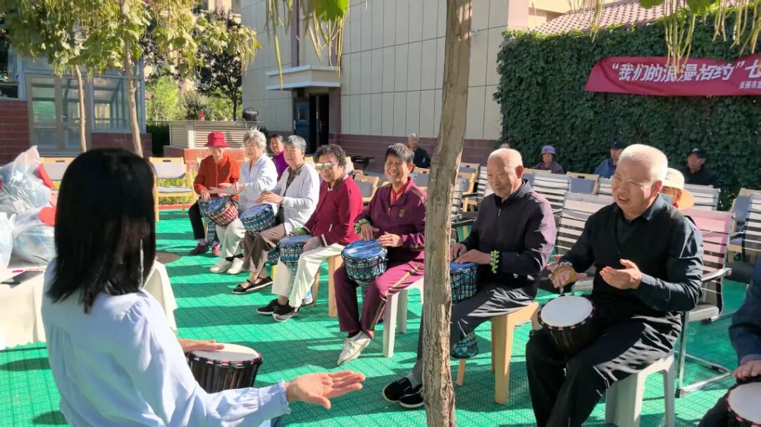 活動(dòng)現(xiàn)場(chǎng),伴隨著溫馨的音樂(lè),非洲鼓表演拉開(kāi)了活動(dòng)序幕,輕快的節(jié)奏瞬間點(diǎn)燃了現(xiàn)場(chǎng)氣氛,將活動(dòng)推向高潮。協(xié)會(huì)志愿者為老人們送去了紅棗枸杞汁、酸奶、面包等慈善慰問(wèn)品。